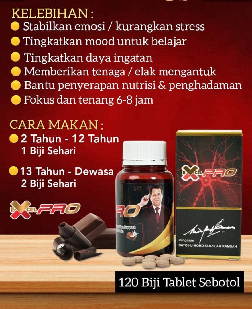 Excel Pro (XPRO) by Dato Fadzilah Kamsah Makanan tambahan premium Tok Abah Fadzilah Kamsah. Dirumus khas untuk anak-anak berumur 12 tahun dan keatas.