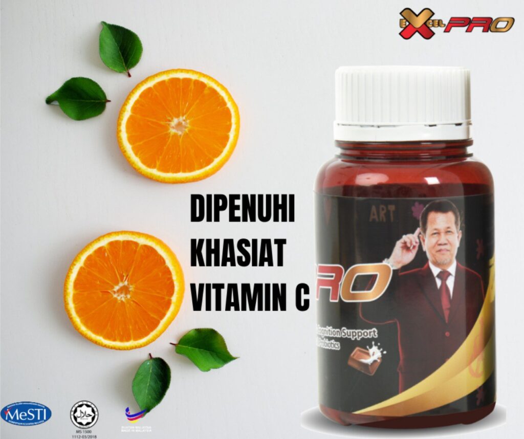 Excel Pro Tablet Coklat yang mengandungi vitamin C yang mampu meningkatkan tindak balas dan pelindungan imun serta mempercepatkan tempoh penyembuhan.