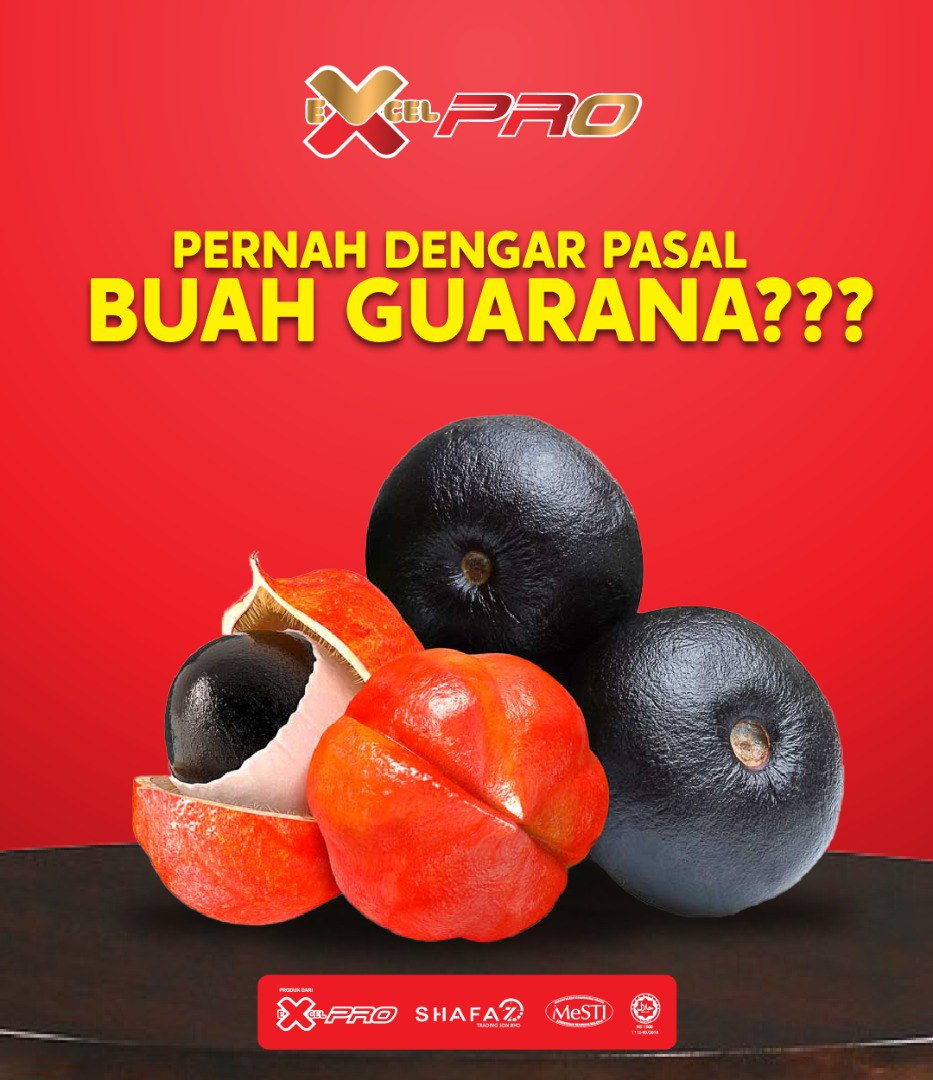 Jadi kalau kita baca senarai ramuan dekat produk makanan ada tulis Guarana, tahulah Guarana ni dijaga kualitinya. Kami letakkan buah Guarana sebagai salah satu ramuan istimewa dalam setiap tablet Excel Pro. Kualiti dijaga supaya khasiatnya dapat membantu anda yang makan Excel Pro.