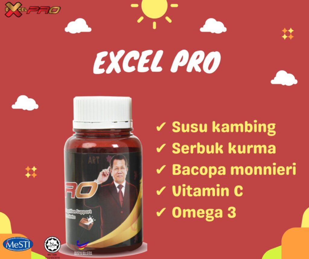 Excel Pro mengandungi semua khasiat yang mampu membantu perkembangan minda anak-anak .
